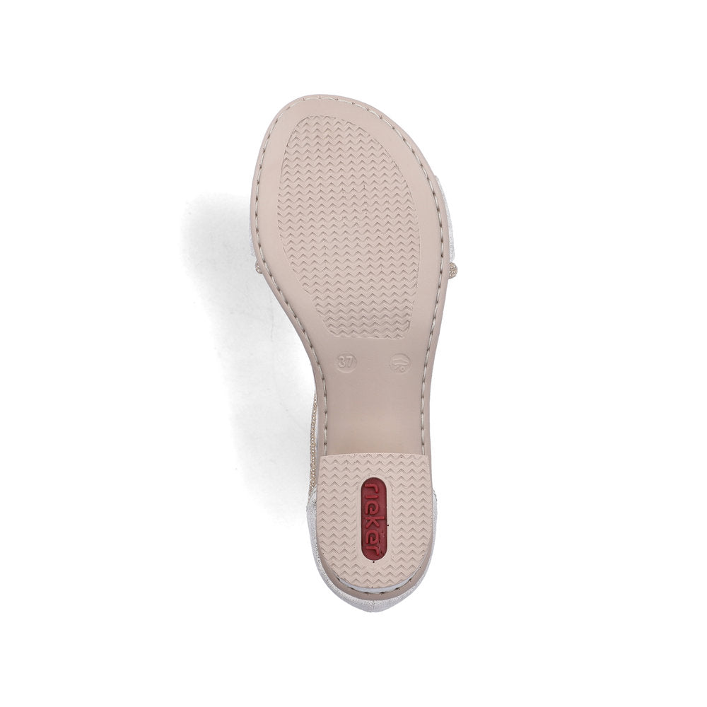 The Rieker 64654-60 Gold Ladies Smart Heeled Open Toe Sandals combine radiant metallic shine with everyday comfort, designed for women who want a polished, versatile shoe that can carry them from morning errands to evening plans.