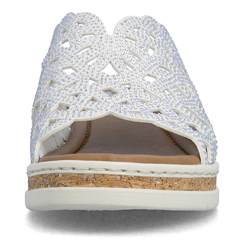 The Rieker V4189-80 White Ladies Slides Wedge Sandals blend minimalist style with practical comfort, delivering a versatile white sandal built for everyday motion. Designed for students, professionals in relaxed settings, and travelers who value a polished, easy-to-wear look, it’s a dependable base for daily errands and casual outings.