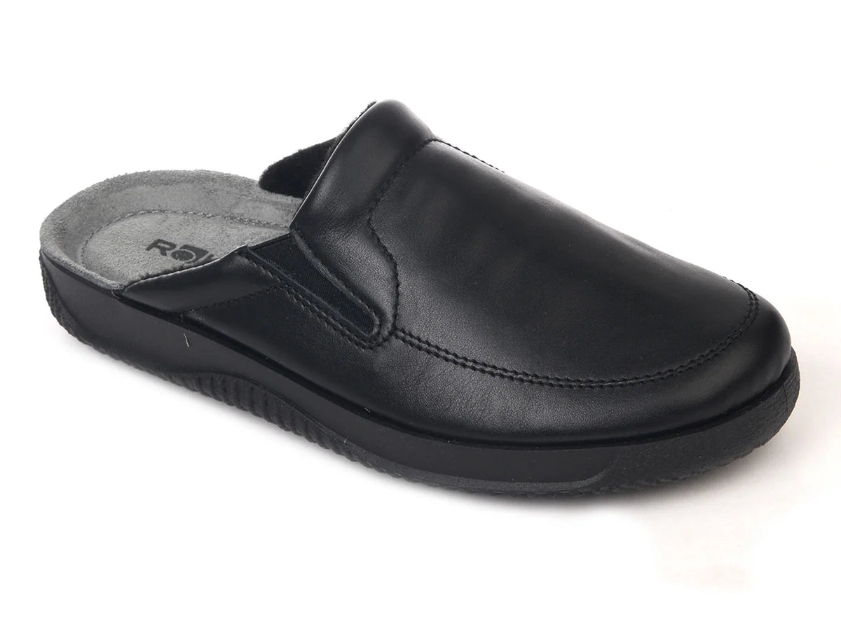 These Rohde 2776 mens slippers in 90 black boast a number of impressive features. The upper and insole is made from high quality leather, with a soft textile lining on the interior for a really comfy fit. Beneath the insole there is thick cushioning and excellent support. The flexible rubber sole provides great traction and grip.