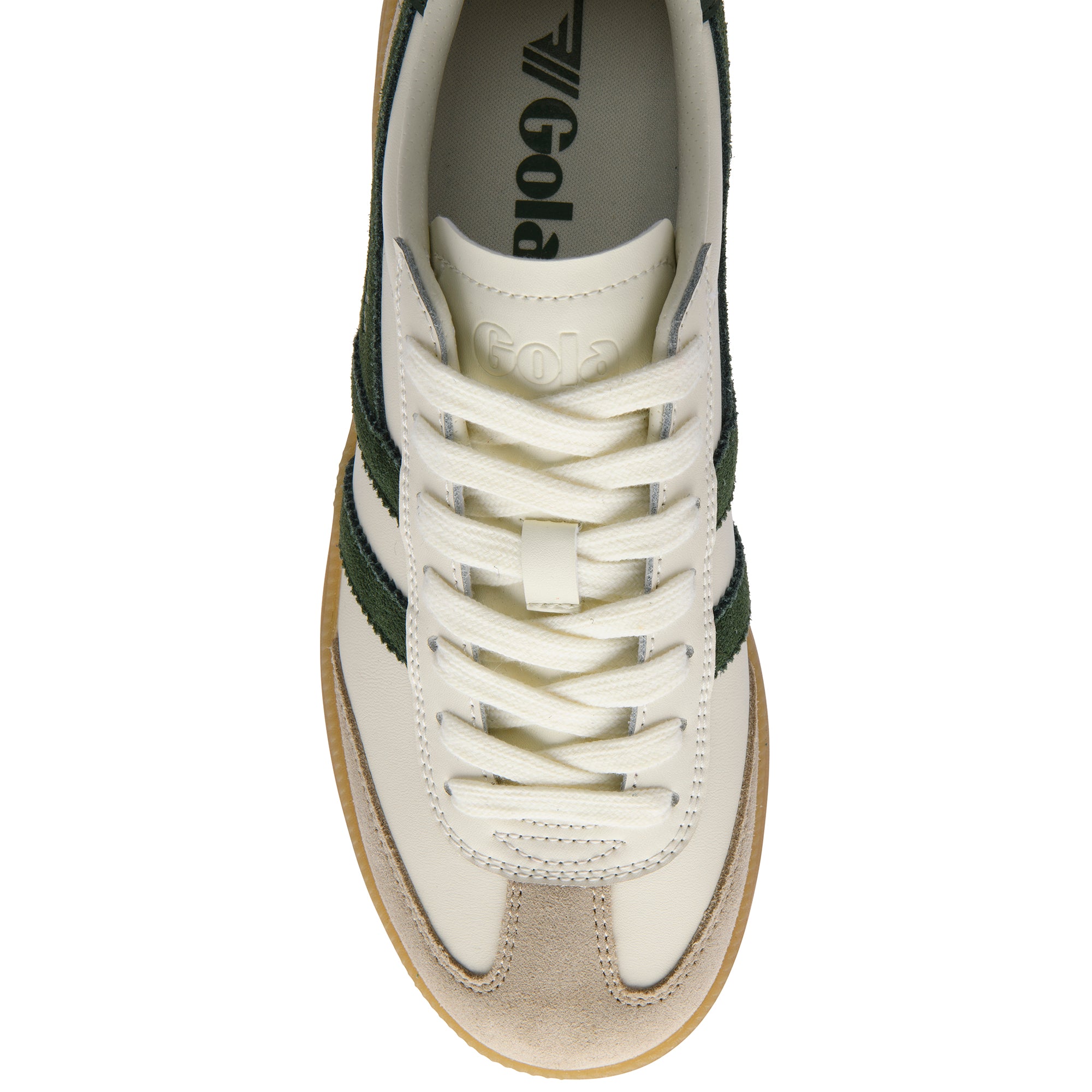 The Gola Women's Viper Leather Trainer is a versatile leather sneaker designed for daily wear. This off-white/bone/evergreen/gum edition blends heritage craftsmanship with a clean, modern colorway that suits casual and smart-casual outfits.